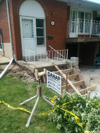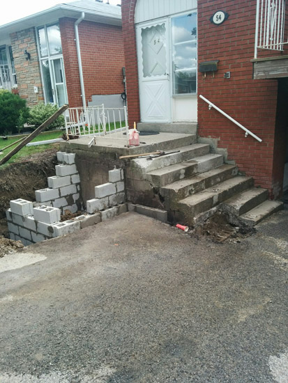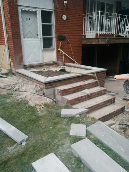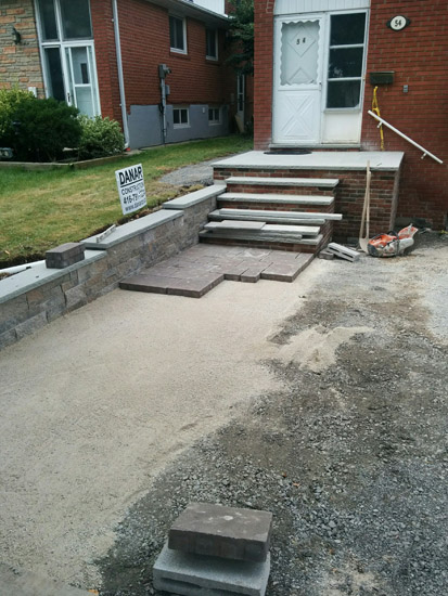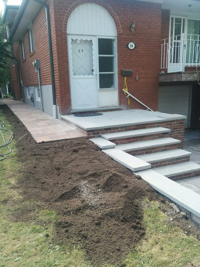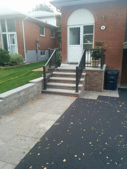 • changing steps from sides to front, stone , asphalt & catch basin to driveway