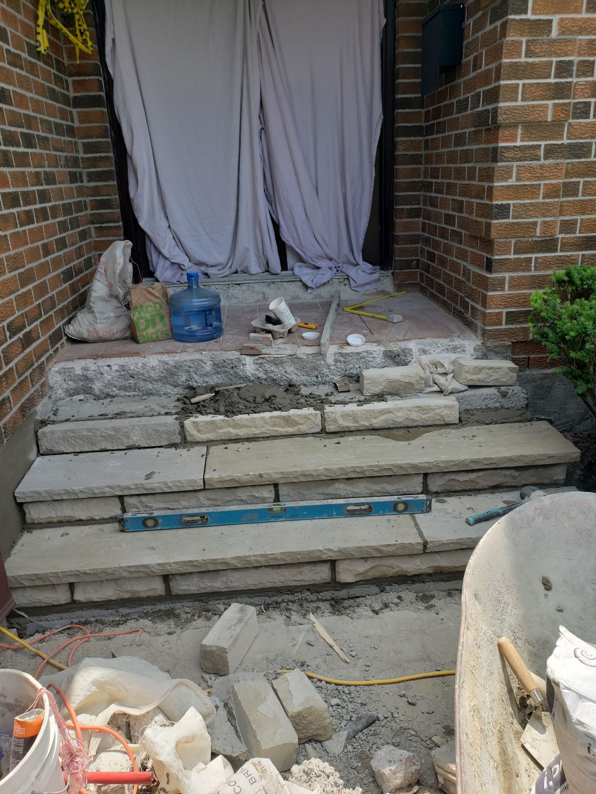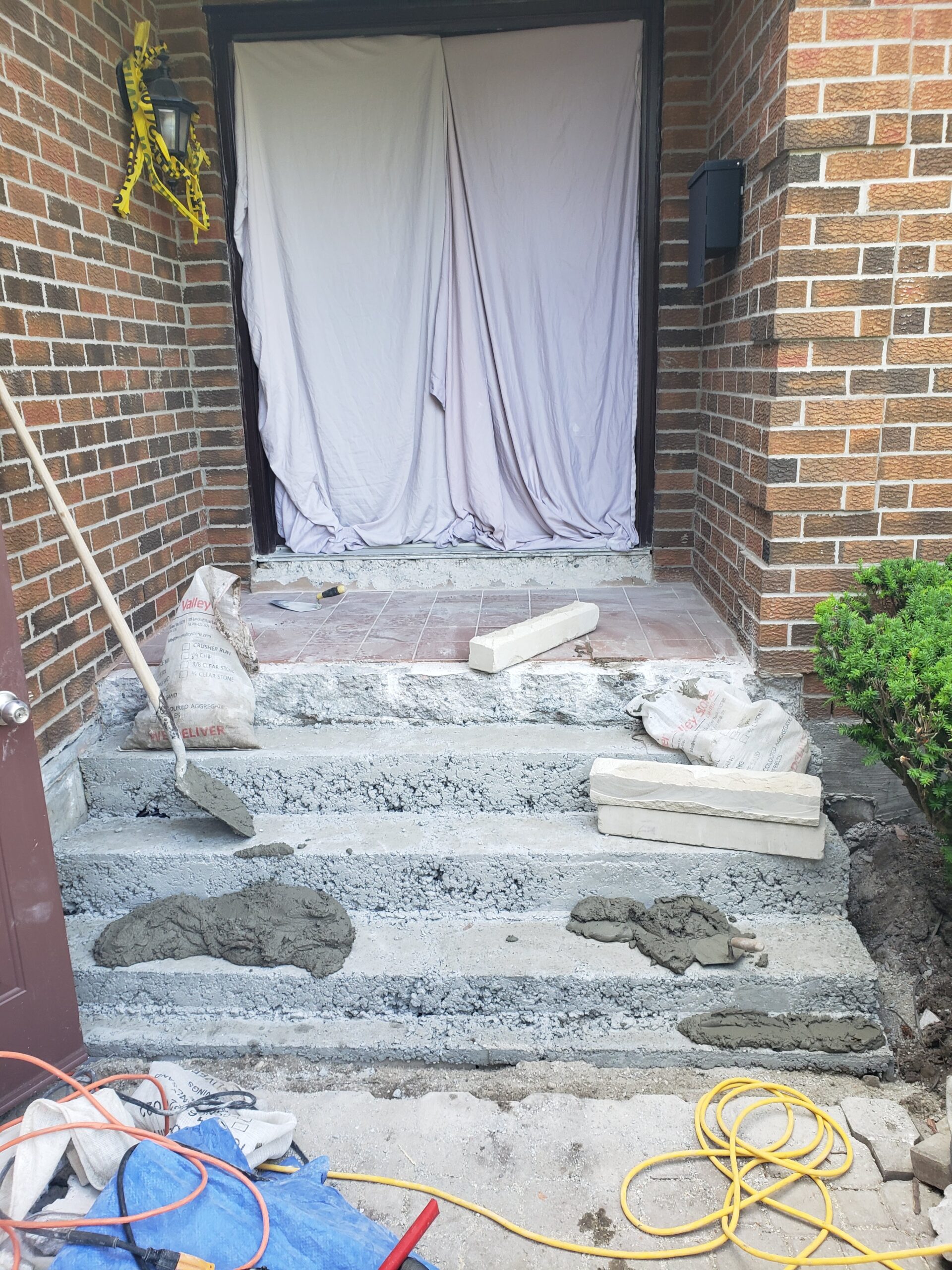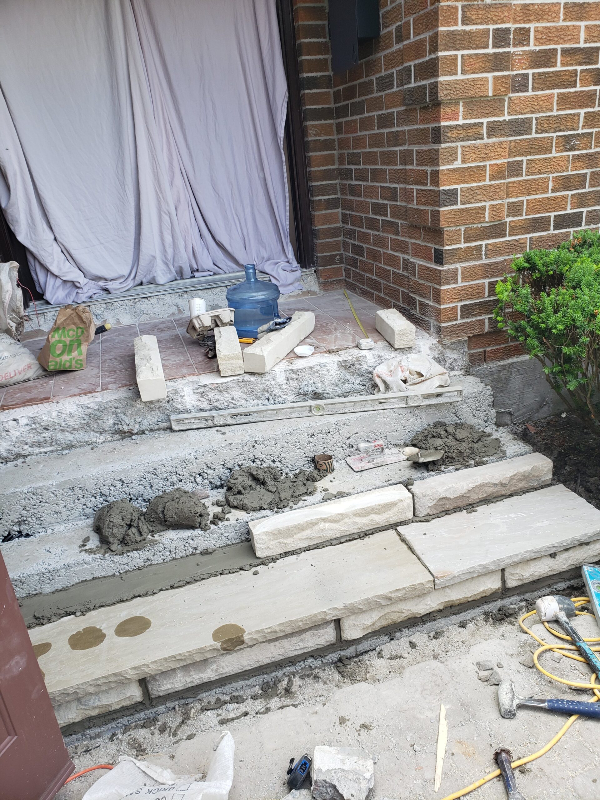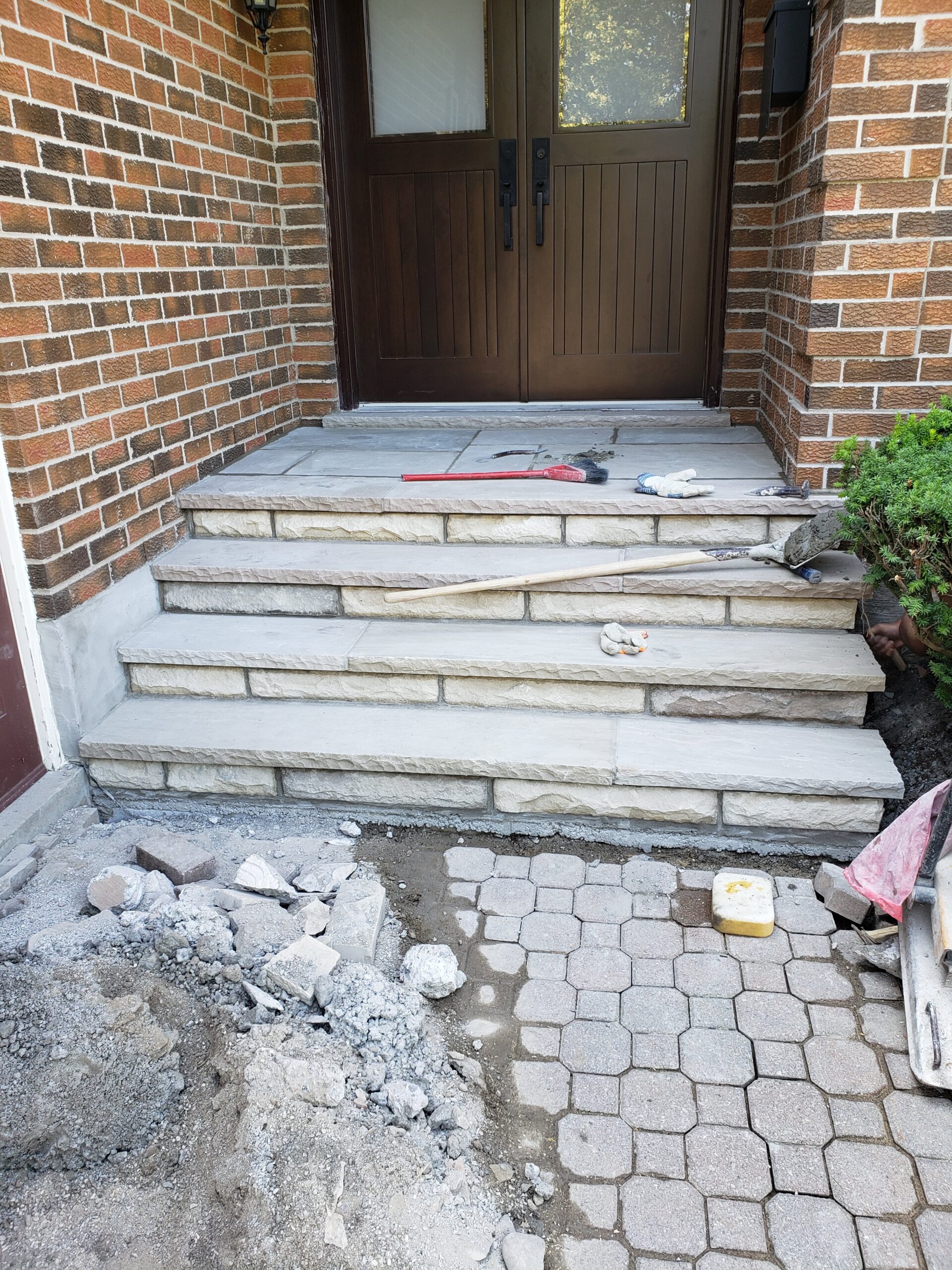 • masonry steps & flag stone front porch